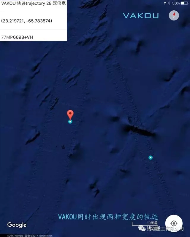 馬上想起了百慕大之謎,果然看到的圖像更加恐怖,也更加確信這是一種智能文明的結(jié)果,而不是自然的結(jié)果!請(qǐng)注意右下角的地圖比例,以說(shuō)明VAKOU的寬度。